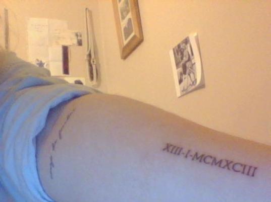 Wahey, my sixth tattoo. The majority of my tattoos are on my left arm. Which is the arm I would use if I were ever to get a sleeve. WHICH, seems like it will probably happen in the near future. Not so much a sleeve, but a lot of things, which are next to each other, I want you to still be able to see skin, I don't want a whole arm covered in ink. I'll let you work out what that means, it's not really too hard.